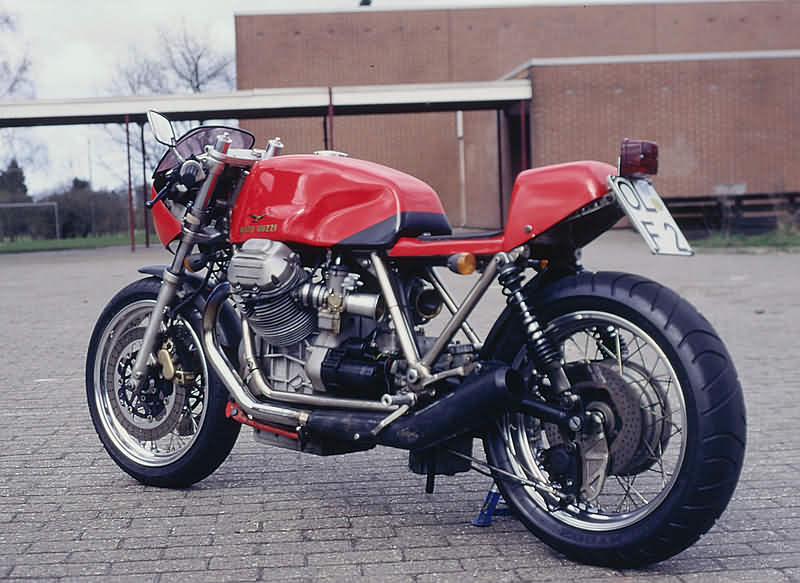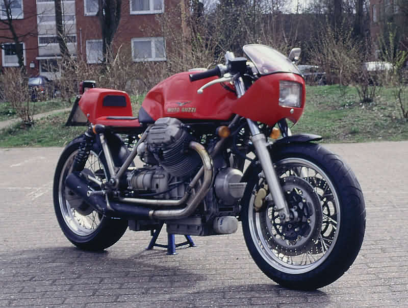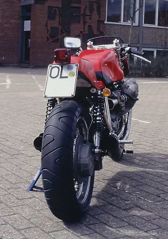 | Hier die technischen Daten zum Umbau von Dirk Pannhoff: Hier noch ein paar Daten über meine EX: Moto Guzzi 850 T3 Baujahr 1978 Gewicht: 190 Kg Fahrwerk: Rahmen vernickelt und Heck gekürzt Jede nur erdenkliche überflüssige Halterung entfernt Motor mit Schwinge 12mm aus der Mitte versetzt 24 Liter Allmers-Alutank Allmers-Aluhöcker 41mm Yamaha FZR 1000 Gabel 320mm Kawasaki GPZ 900R Bremsscheiben vorne Gechoppte LM1-Verkleidung Rad vorne: 120-70-17 auf 3,5" Akront Felge Rad hinten: 160-60-17 auf 4,25" Akront Felge Hagen-Gelbatterie unter dem Rahmen Aprilia 125er Fussrasten Koni-Stossdämpfer hinten Mitschwingendes Schutzblech hinten geschraubte Rahmenversteifung über dem Getriebe Motor: Hubraum: 992ccm ca 90PS Verdichtung: 11,5 Doppel-Zündung 40mm Dell´Orto Vergaser Aluminium-Ansaugtrichter 40er Einlass und 44er Auslass Ventile MTS-Renn-Nockenwelle Köpfe komplett überarbeitet, Ansaug- und Auslass-Querschnitte angepasst 40mm Krümmer Gekürzte Lafranconi LM1/2 Tüten Kurbelwelle gewuchtet 1,7Kg Einscheiben-Kupplung Programmierbare Moto-Witt Kennfeld-Zündung Elektronische Laderegelung Elektrik: Komplett modularer Kabelbaum Sigma-Sport-Fahrradtacho Kröber-Drehzahlmesser Und: Alles restlos (incl. Ventilgrössen!) im Fahrzeugschein eingetragen! Weitere Infos und Bilder findet Ihr unter www.drag1.de Gruß Dirk | |||||||||||||||||||||||||||||||||||||||||||||||||||||||||||||||||||||||||||||||||||||