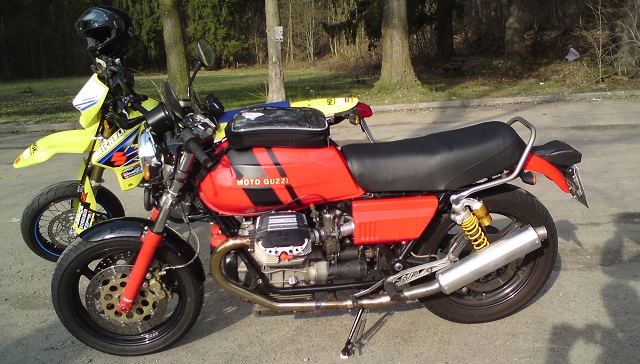 Hier die Technischen Daten zum Umbau von Gerald Zahn: Hi Karl, ich möchte Dir auch mal meinen Guzzi Umbau vorstellen: Le Mans 4 BJ. 1985 Gabel: Guzzi 1100 Sport Federbeine: Öhlins Felge vorne: Aprilia 250 Bremsen vorne: 320 Brembo Scheiben mit 4 Kolben Brembo Zangen Sitzbank: V65 umgebaut Auspuff: BOS Racing Ducati Cockpit: Ducati Monster Seitendeckel: Le Mans 2 77 PS / 92 NM Drehmoment Nockenwelle 40 Dell. offen Freundliche Grüße Gerald Zahn |