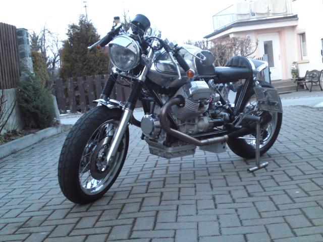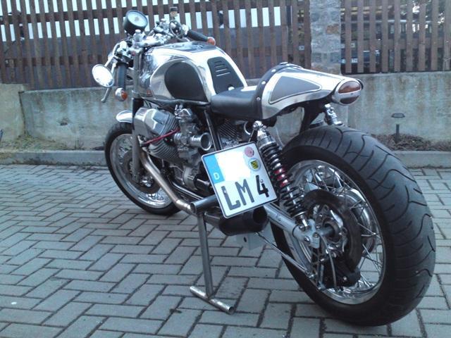 Hier die Technischen Daten zum Umbau von Tommy ?: Hi Karl, wollte hier auch meinen Umbau vorstellen. Ursprünglich war es eine Le Mans 4 und wurde 5. mal umgebaut, jetzt aber Schluss jetzt bleibt sie so wie sie ist. Zum Fahrzeug :Motor wurde modifiziert (andere Nocken, Kohlenstoff beschichtete Ventile, verstärkte Federn, leichte Schwungscheibe, Ergal Steuerräder schräg. Bitubo Dmpfer hinten und vorn, 17ner San Remos Felgen, Alutank und Heck(aus Blech von LKW Tank gebastelt), Rücklicht von einem Opel PKW aus den 30iger Jahren, Auspuff gekürzte Lafras ohne Eingeweide, 40iger Dellorto Vergaser anders bestückt und vieles mehr. Ich komme aus Friedersdorf in der Oberlausitz, da wo Peter Hesse auch her kommt und das Guzzi-Treffen war (Spitzkunnersdorf),im übrigen seine Guzzi sieht auch schon wieder anders aus als die auf deiner Seite. Viele Grüße Tommy |